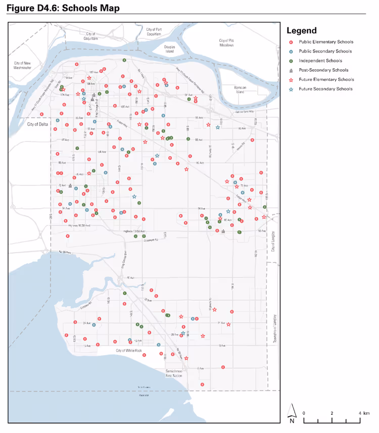 Surrey’s eight community hubs — including Surrey City Centre/Whalley, Guildford, Fleetwood, Newton, Cloverdale, Clayton, Grandview, and Semiahmoo — will continue to anchor planning decisions, where housing, amenities, and services are expected to be concentrated.